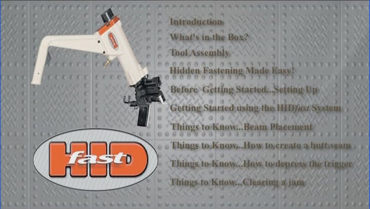 Introduction & what's in the box Tool Assembly Hidden Fastening Made Easy Setting up the HIDFast pneumatic decking tool Getting Started Beam Placement Butt Seam Safety Trigger How to clear a jam